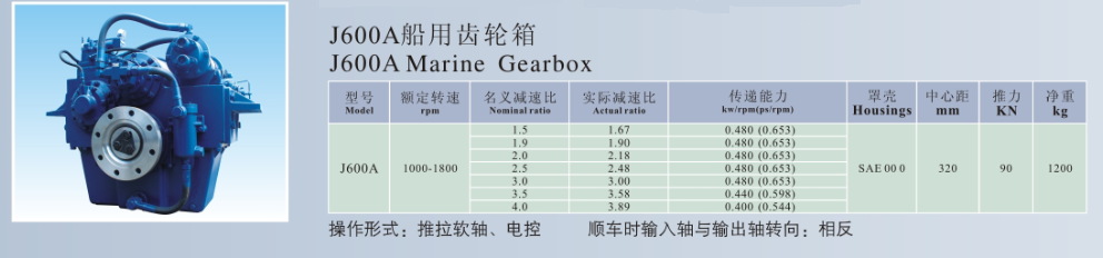 | 前進名義減速比: | 1.5 | 輸入轉速: | 1000-1800rpm |
