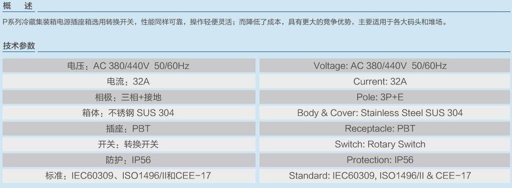 | P型系列冷藏集裝箱電源插座箱下插式 | |||