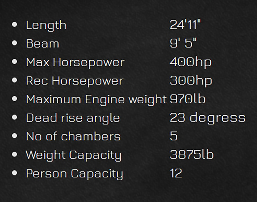 | 推薦馬力: | 300hp | 載重量: | 3875lb |