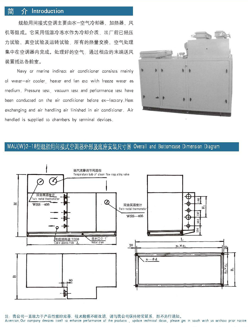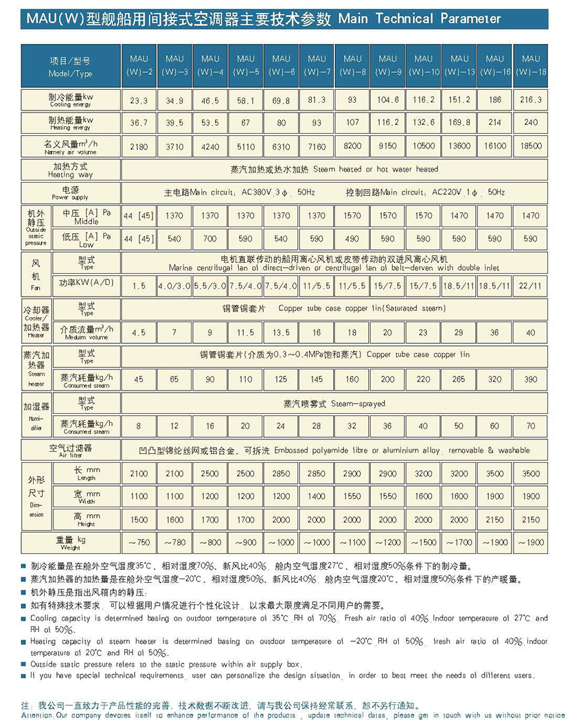 | 風機電機功率: | 7.5/4.0kW | 蒸汽加熱器型式: | 銅管銅套片(介質為0.3~0.4MPa飽和蒸汽) |