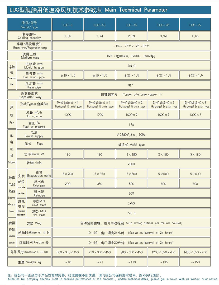 | 蒸發器型式: | 銅管銅套片 | 風機型式: | 臥式軸流式 |