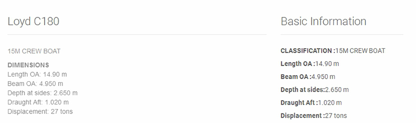 | 總長: | 14.90m | 型寬: | 4.950m |