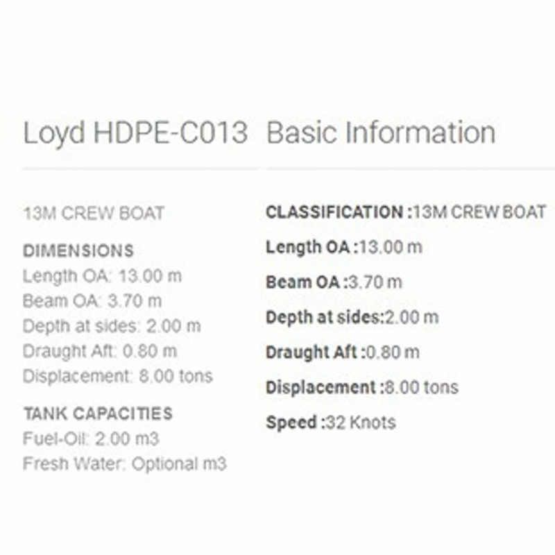 | 總長: | 13.00m | 航速: | 32kn |