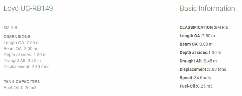 | 總長: | 7.5m | 航速: | 34kn |