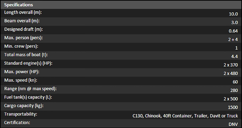 | 總長(zhǎng): | 10m | 航速: | 60kn |