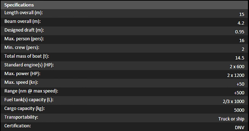 | 總長: | 15m | 航速: | 50kn |
