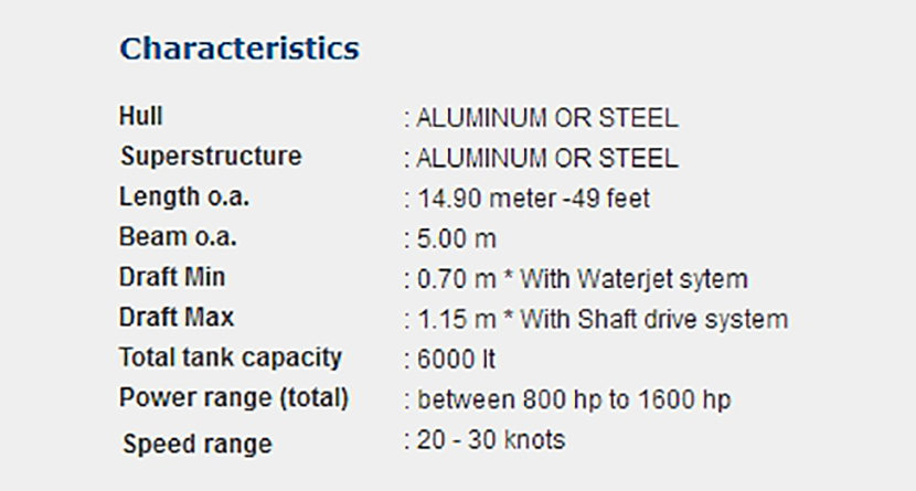 | 總長: | 14.90m | 航速: | 20kn |