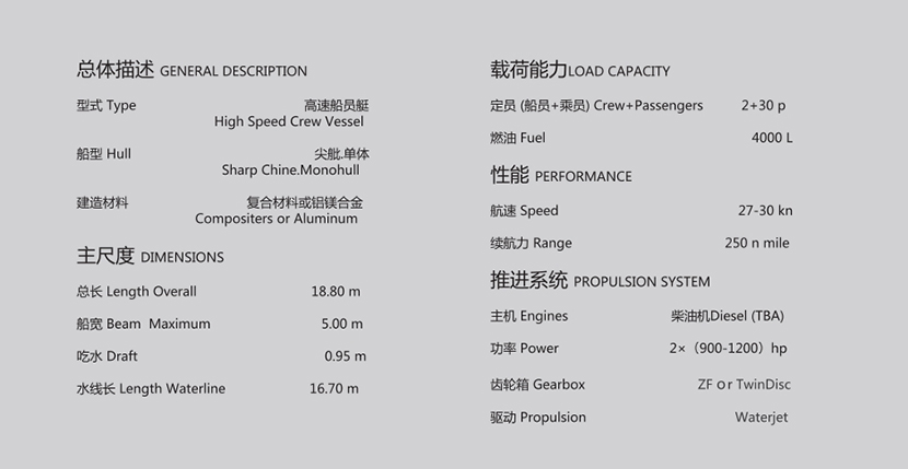| 發動機功率: | 2×(1000-1300)hp | 推進裝置: | Waterjet |