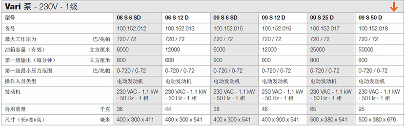 | 230V1級Vari泵 | |||