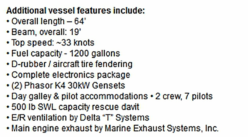 | 總長: | 21m | 燃油容量: | 1200 gallons |