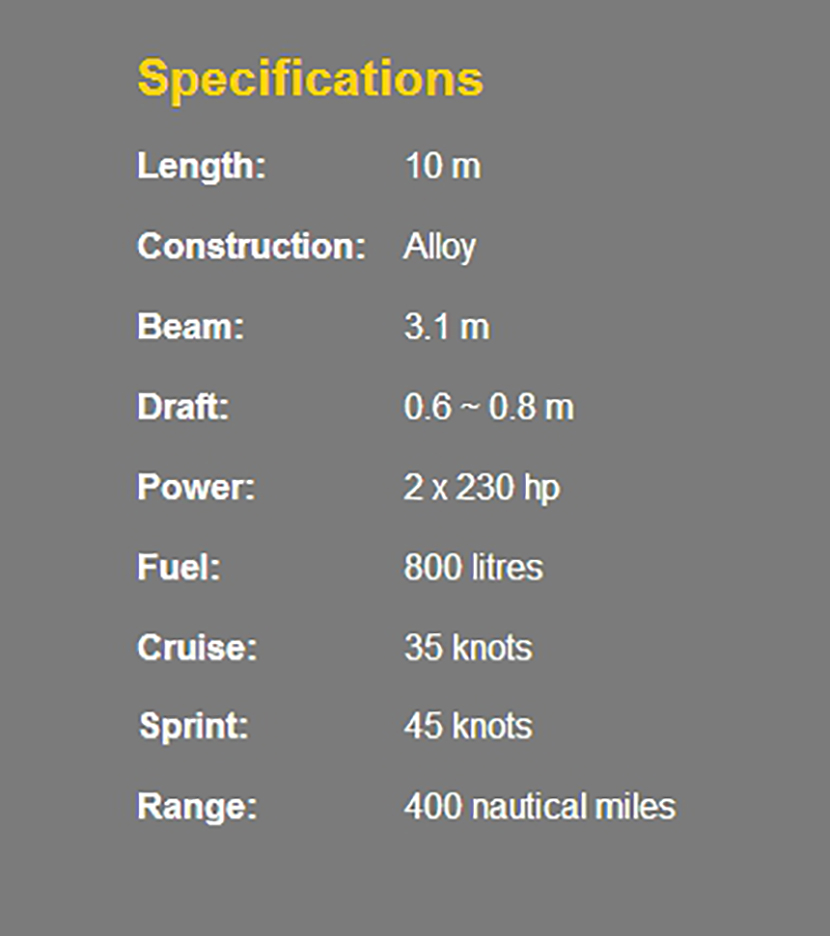 | 總長: | 10m | 航速: | 35kn |