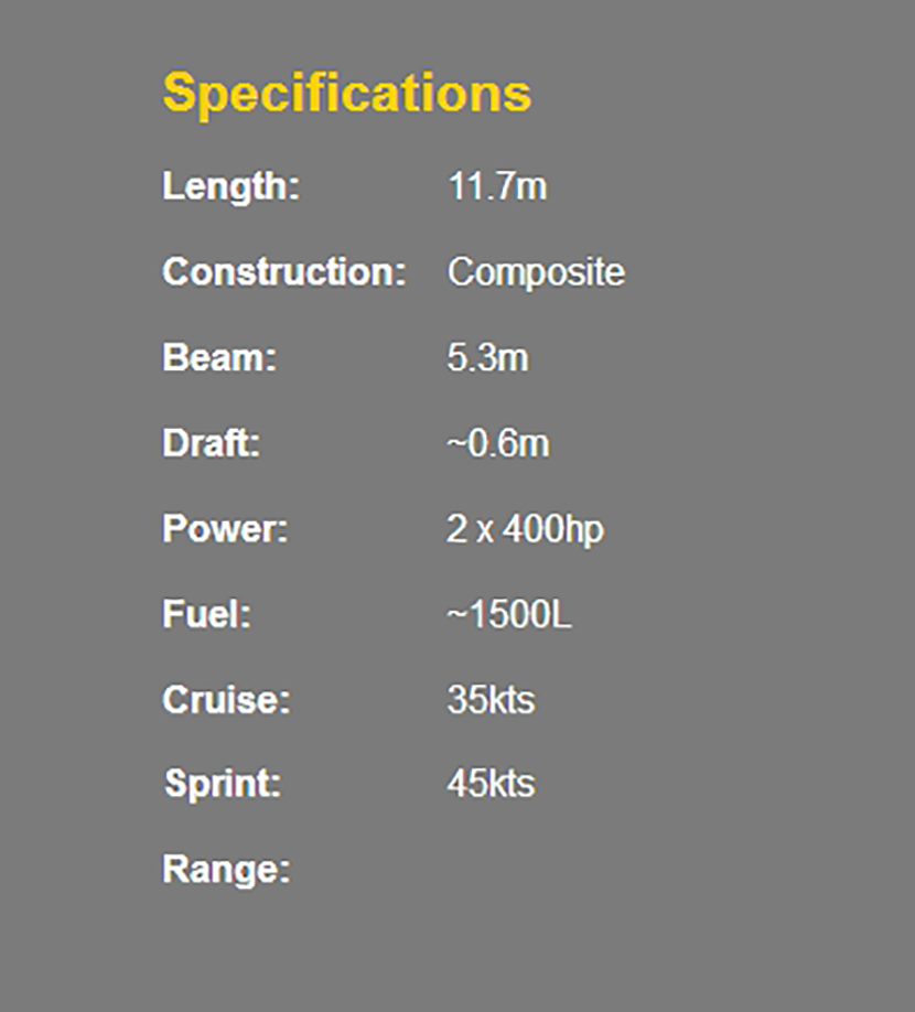 | 總長: | 11.7m | 航速: | 35kn |