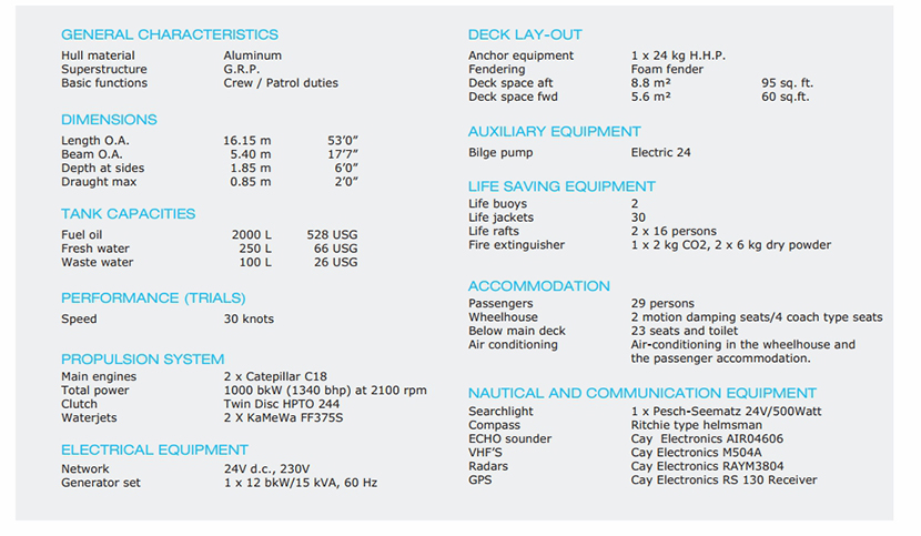 | 總長: | 16.15m | 航速: | 30kn |