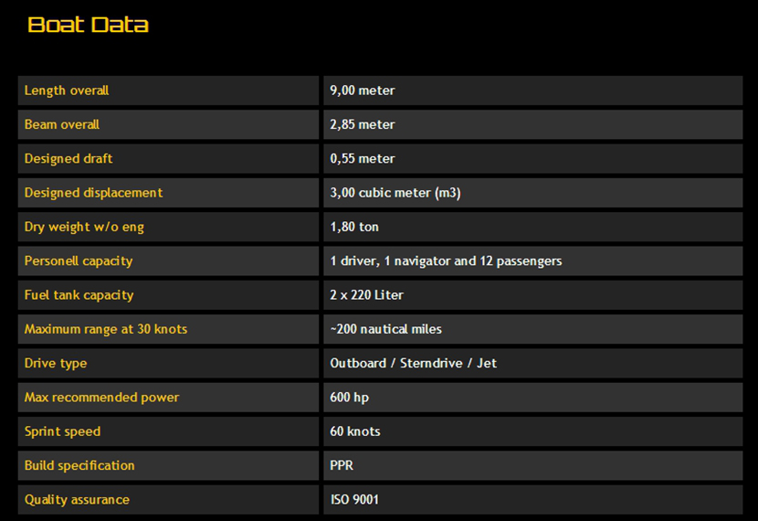 | 總長: | 9.00m | 航速: | 60kn |