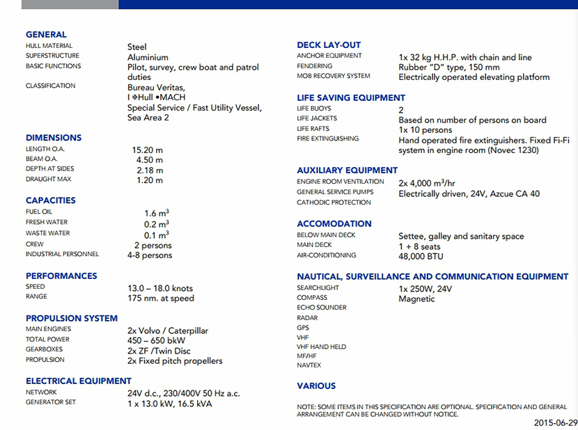 | 發(fā)電機組: | 2×Caterpilar /Volvo | 船組人員: | 2 P |