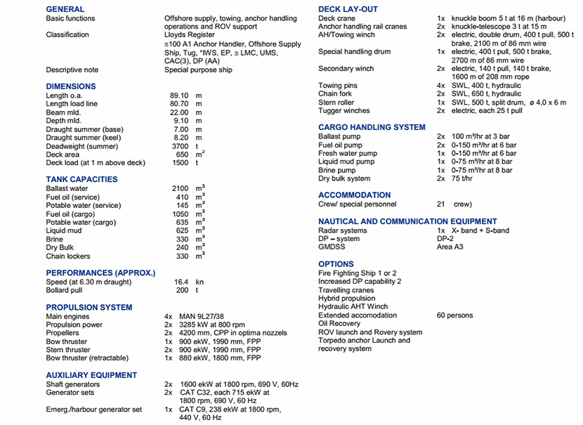 | 發動機功率: | 2×3285kW at 800rpm | 推進裝置: | 可調槳 |