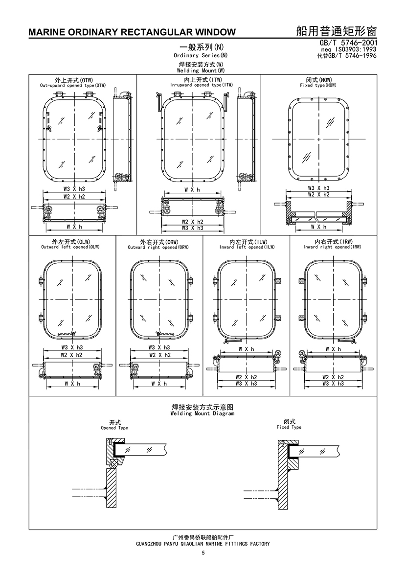 船用焊接安裝式普通矩形窗