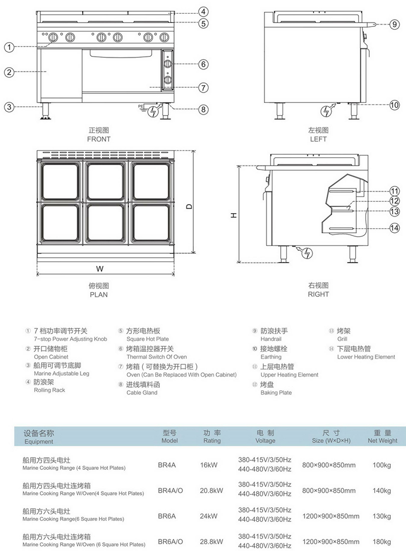 | 類型: | 船用電灶 | 外形尺寸: | 800×900×850mm |
