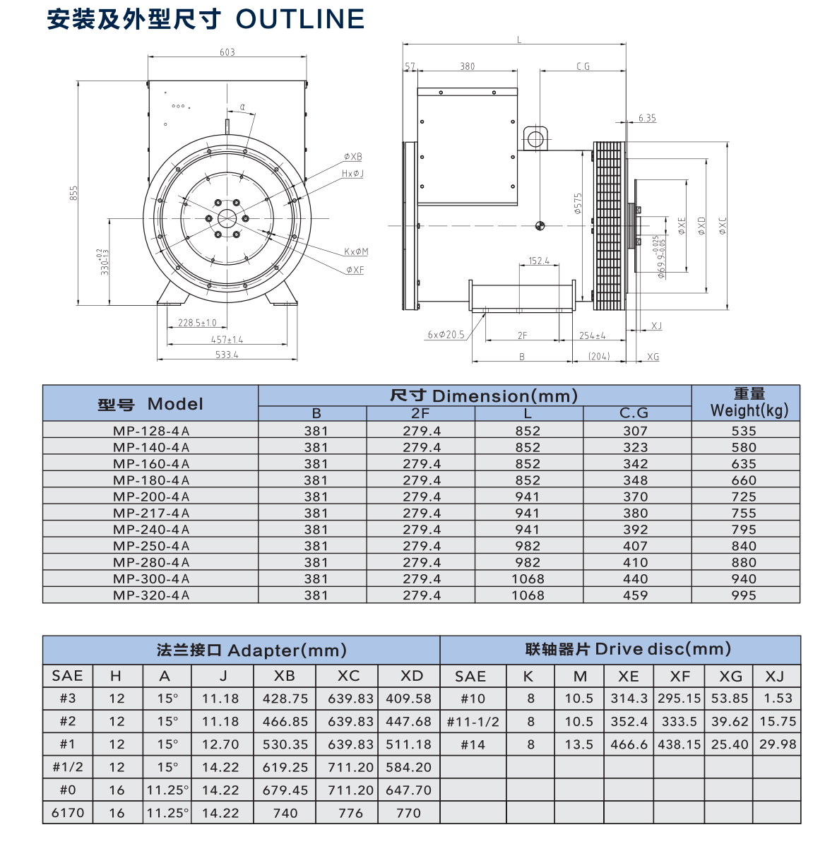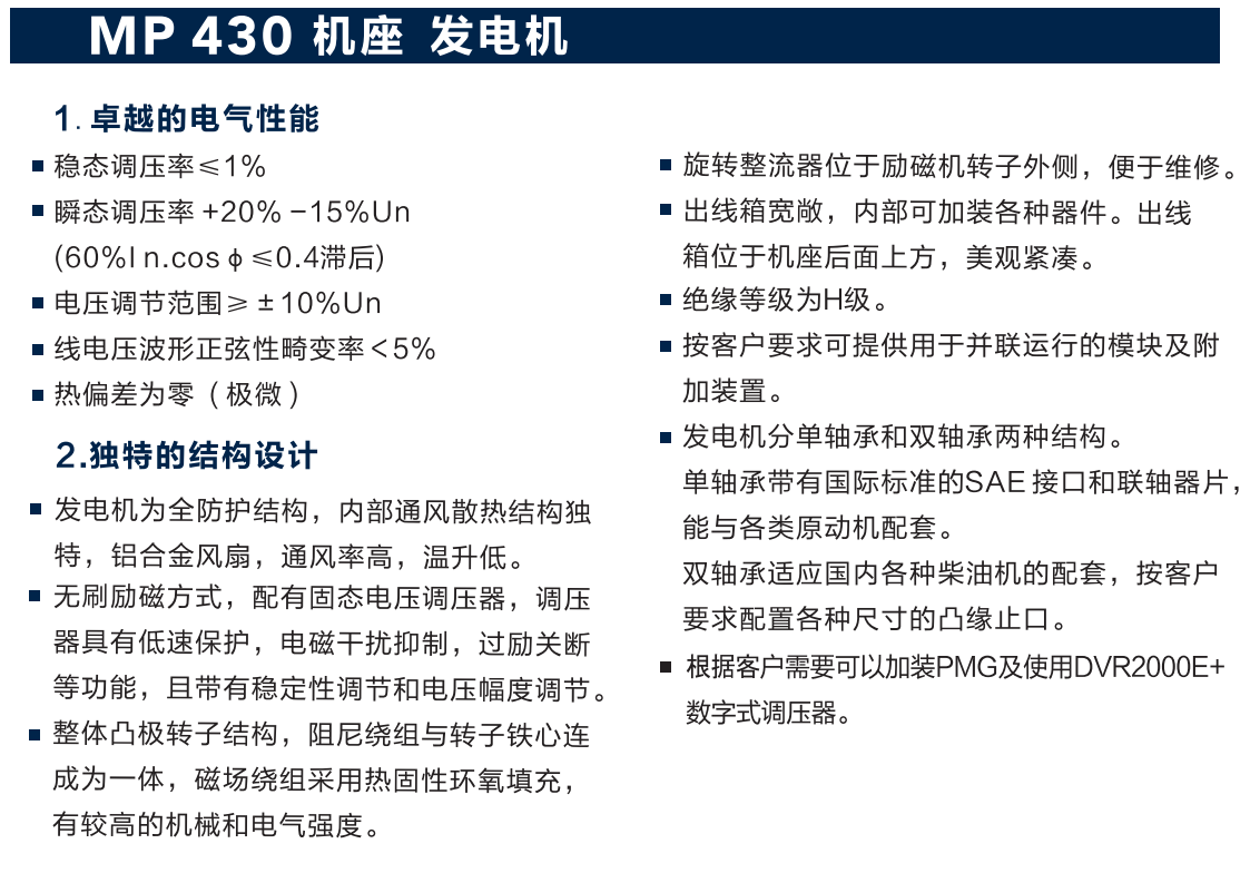 | MP430無刷同步交流發電機50HZ | |||