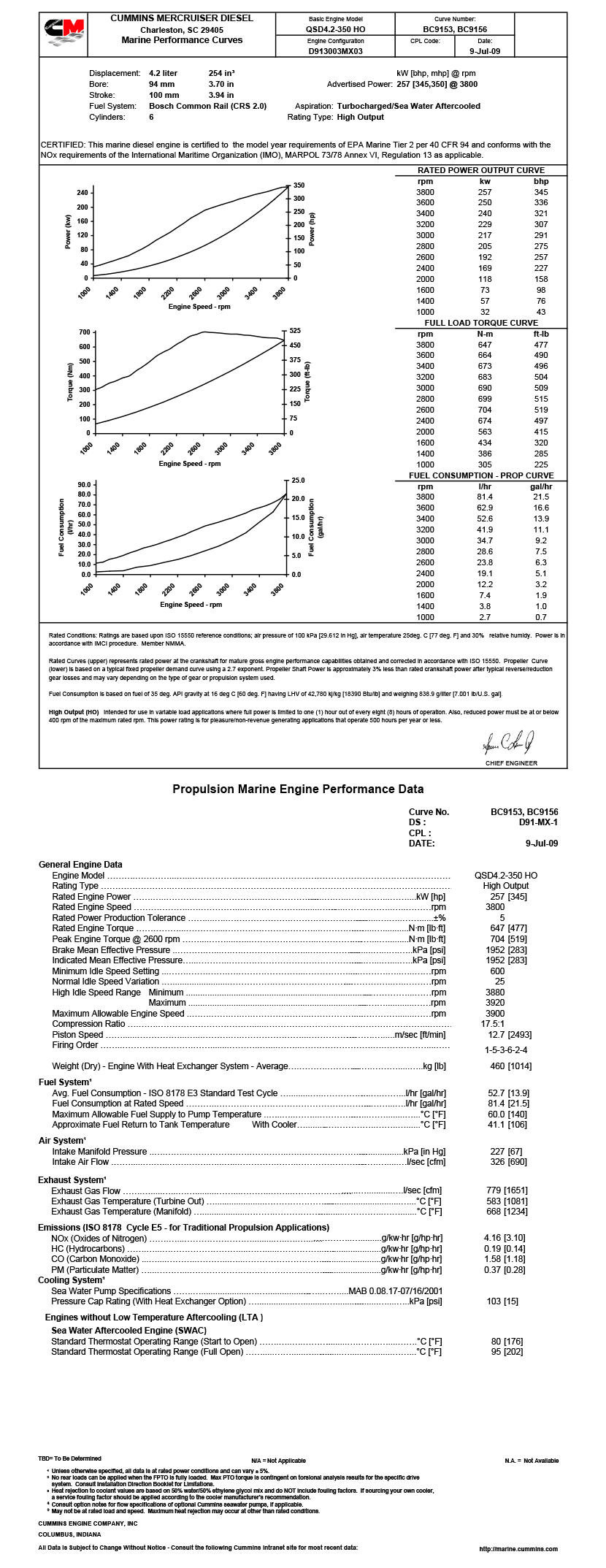 This marine diesel engine is certified to the model year requirements of EPA Marine Tier 2 Per 40 CFR 94 and conforms with the NOx requirements of the International Maritime Organization(IMO),MARPOL 73/78 Annex VI,Regulation 13 as applicable. |