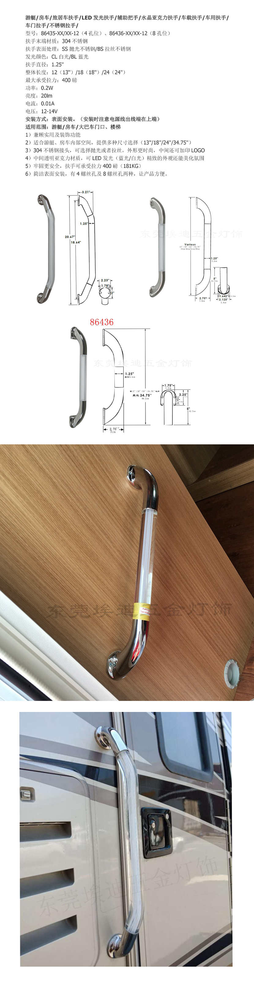 不銹鋼LED發光扶手86436-XX/XX-12東莞埃迪五金燈飾有限公司 |