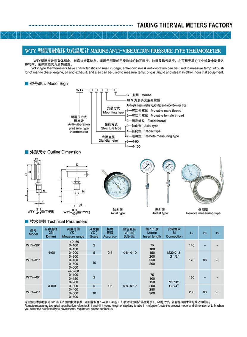 | WTY型船用耐震壓力式溫度計 | |||