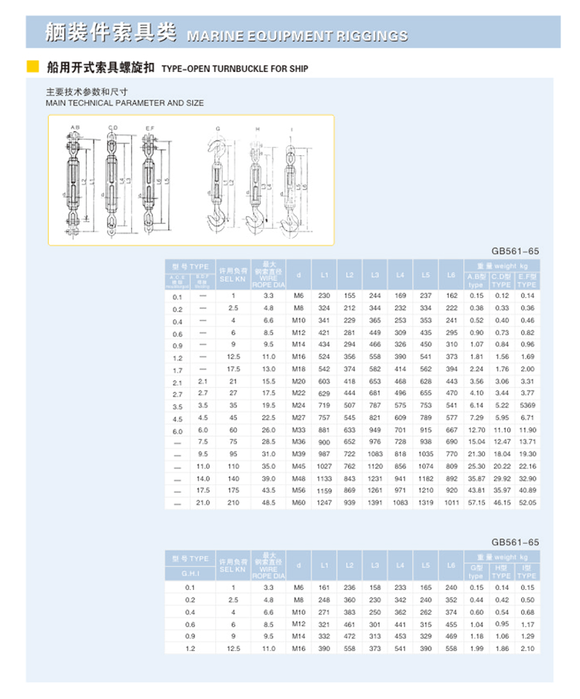 類型: 船用開式索具螺旋扣
