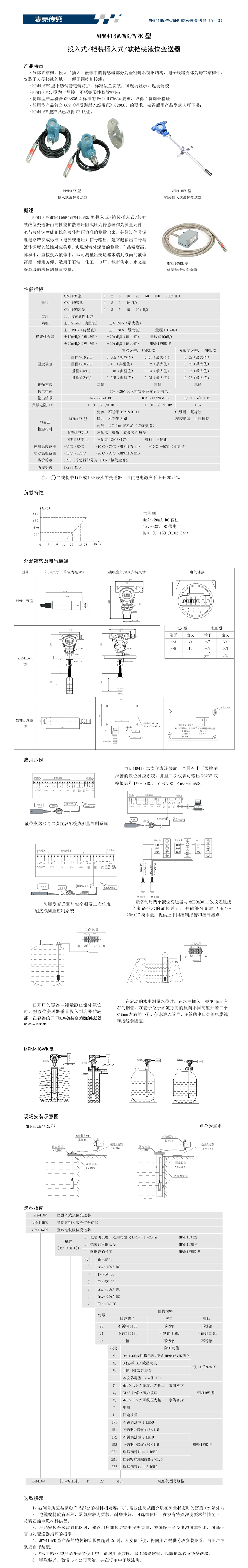| MPM416W型投入式液位變送器 | |||