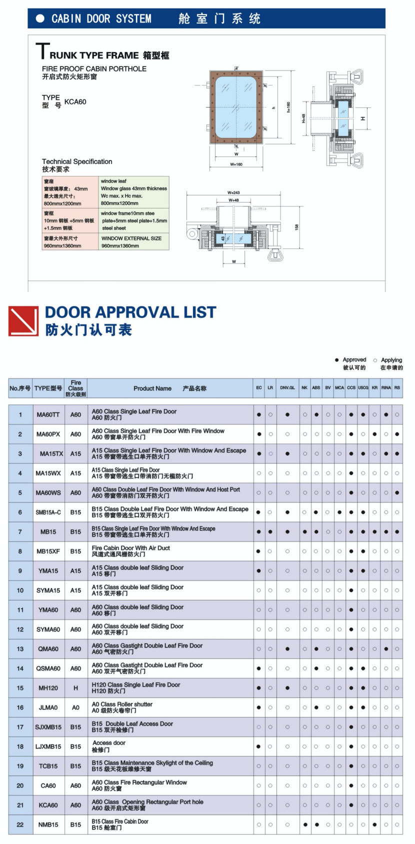 | 艙室門系統箱型框開啟式防火矩形窗 | |||
