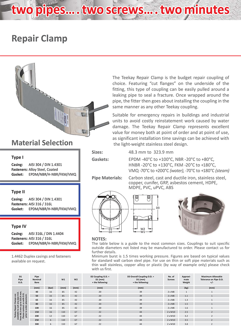 | 85~110mm寬 應(yīng)急用免法蘭卡箍 | |||