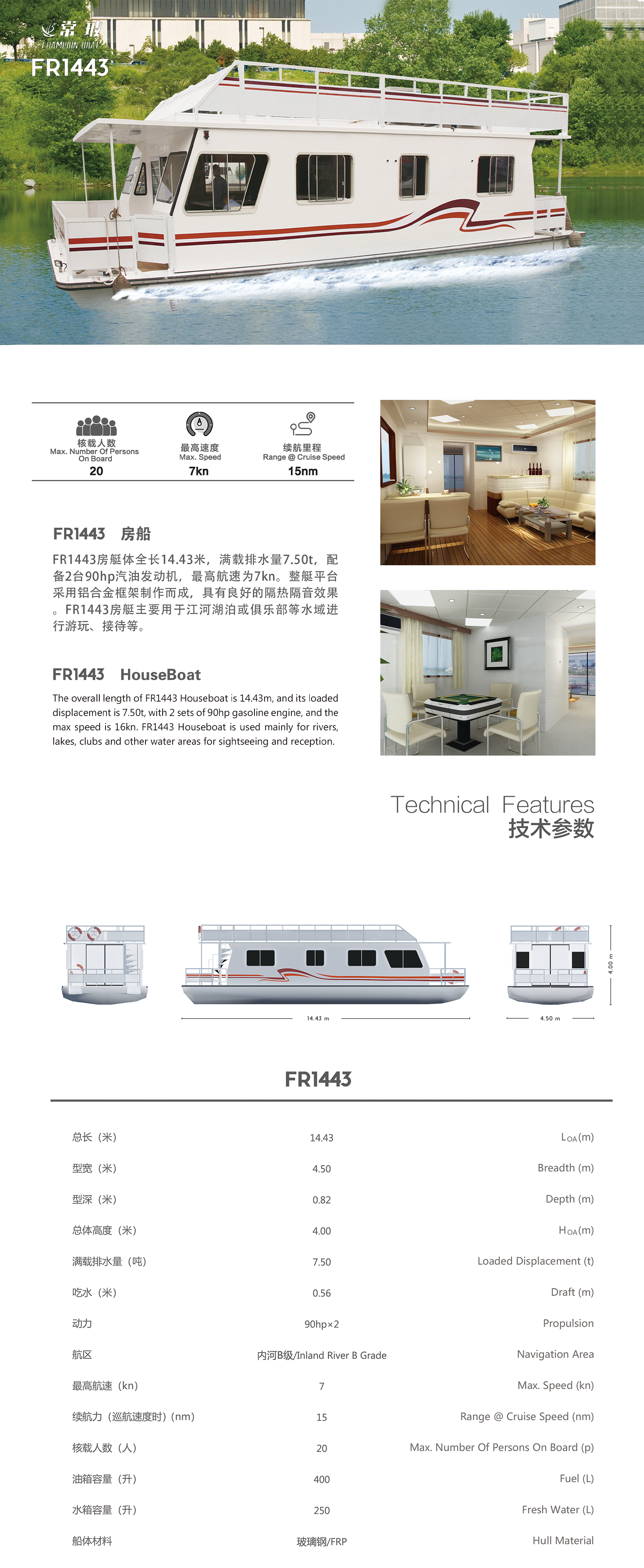 | 總長: | 14.43m | 航區: | 內河B級/Inland River B Grade |