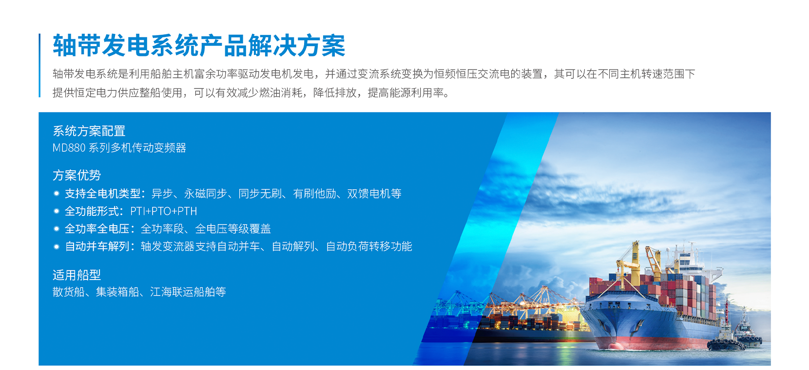 | 軸帶發(fā)電系統(tǒng)產(chǎn)品解決方案 | |||