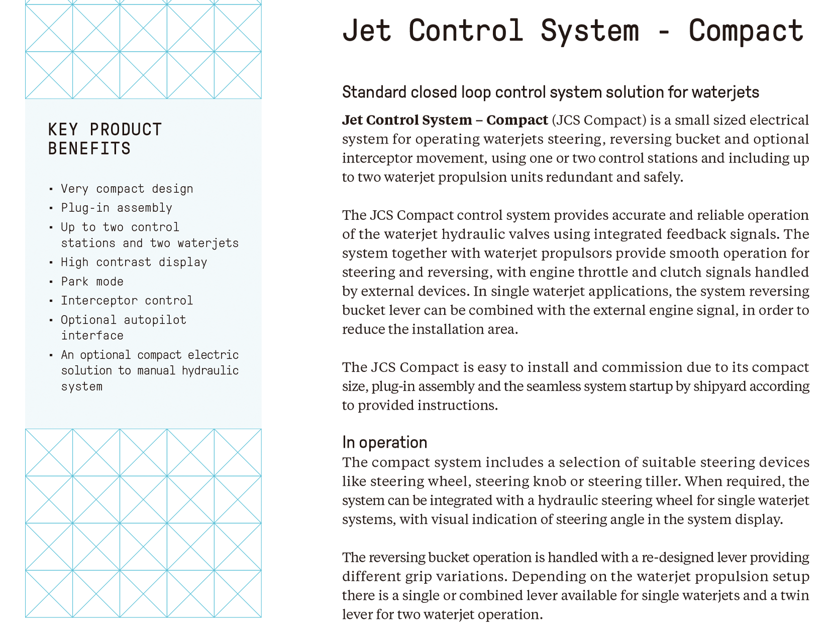 | 緊湊型噴水推進電動控制系統 | |||